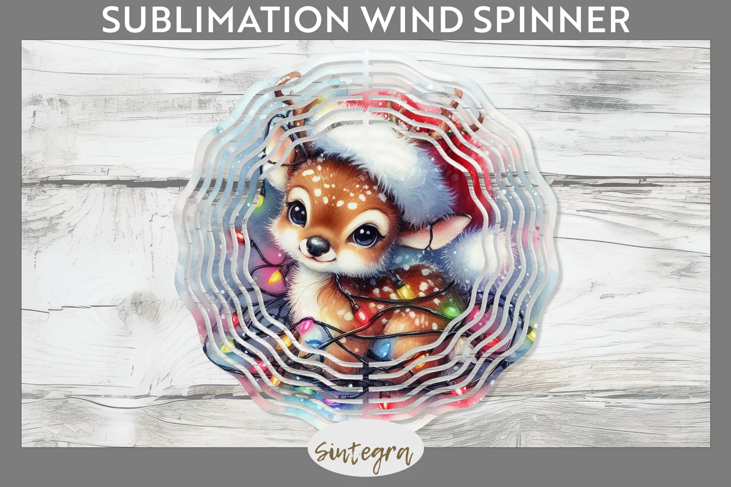 Christmas Deer Entangled in Lights Wind Spinner Sublimation example image 1