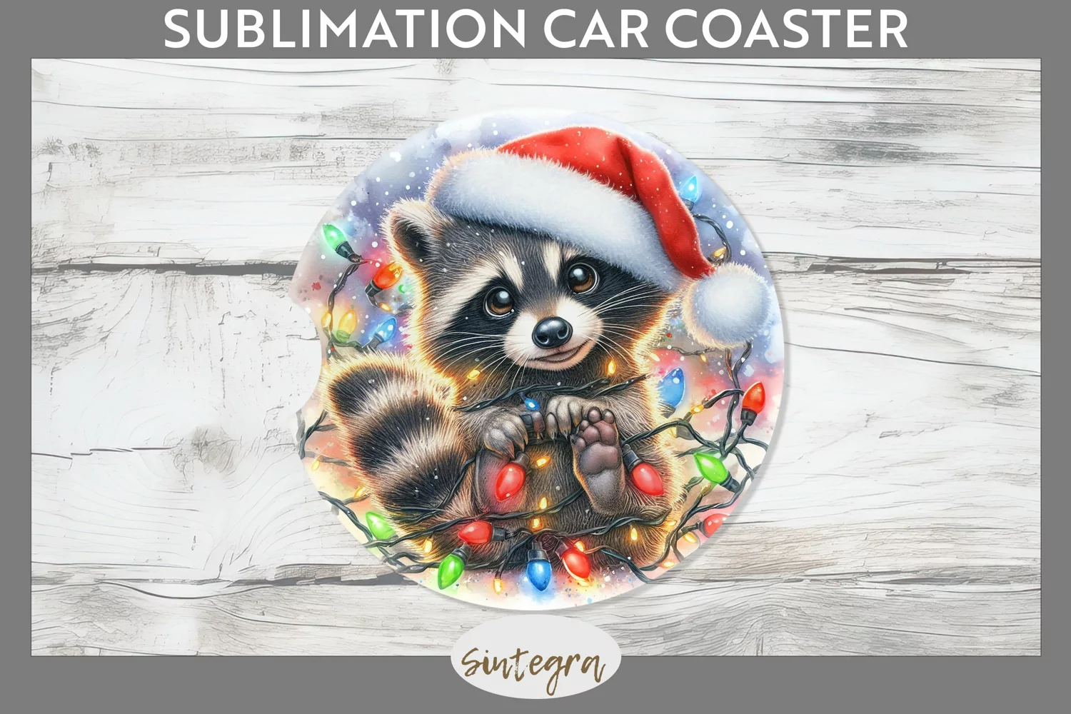 Similar Design Products to Christmas Raccoon Entangled in Lights Car Coaster Sublimatio