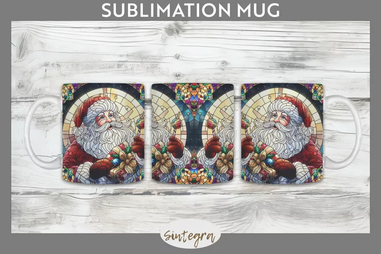 Stained Glass Santa Claus Mug Wrap Sublimation