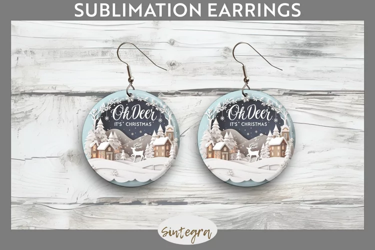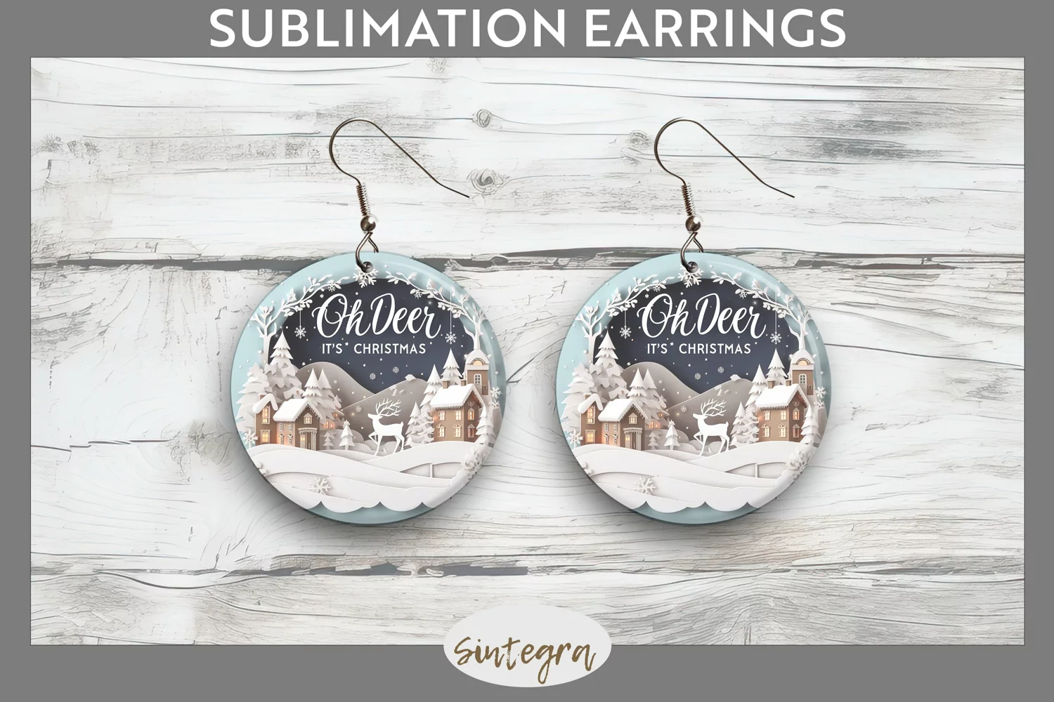 Funny Christmas Round Earrings Sublimation Image Earrings Template Sublimation Print Sublimation Earrings Sublimation Round Earrings 3d Christmas Sublimation Oh Deer It' S Christmas Quote 3d Christmas Sublimation Png