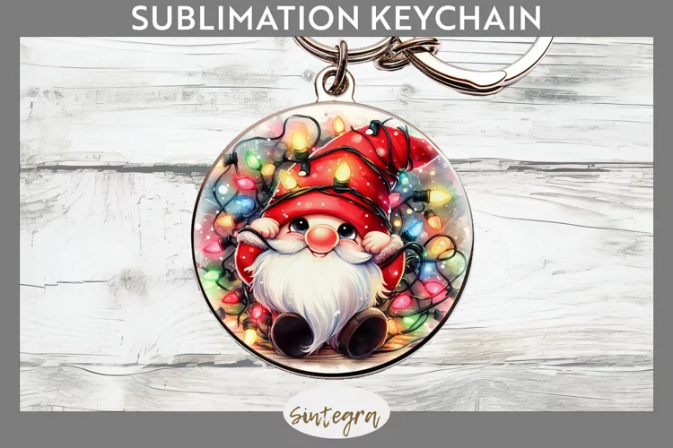 Christmas Sublimation Funny Christmas Sublimation Image Christmas Sublimation Png Sublimation Print Keychain Template Sublimation Keychain Round Keychain Png Sublimation Round Keychain Gnome Entangled In Lights