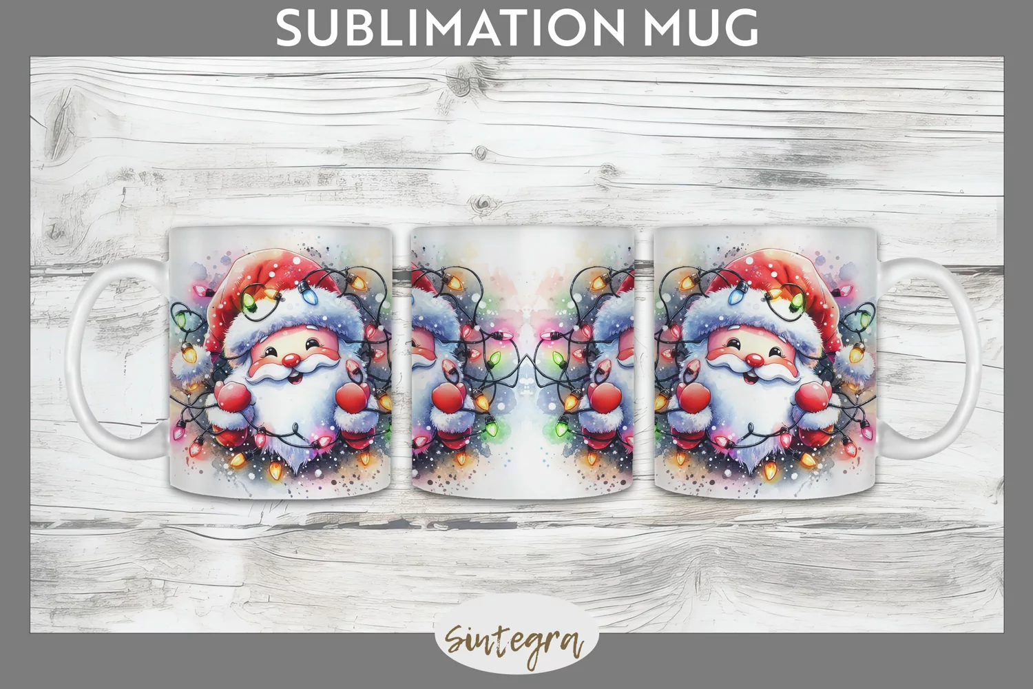 Christmas Santa Claus v2 Entangled in Lights Mug Wrap Sublim