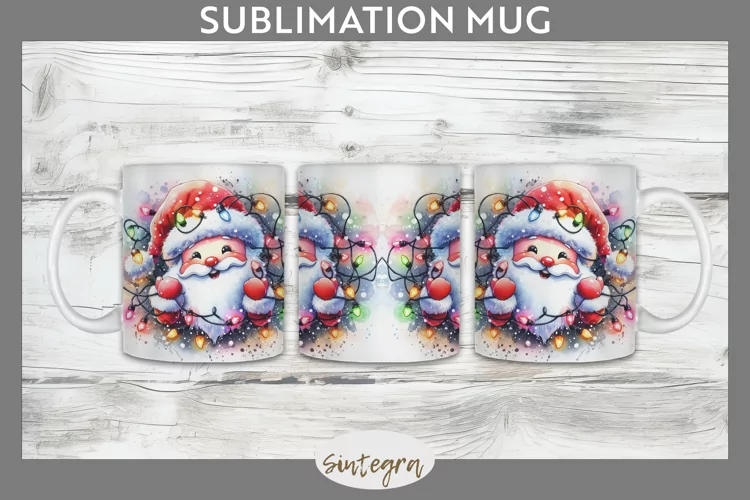 Mug Template Sublimation Mug Christmas Sublimation Funny Christmas Sublimation Image Christmas Sublimation Png Mug Wrap Coffee Cup Wrap Sublimation Mug Print Santa Claus Entangled In Lights