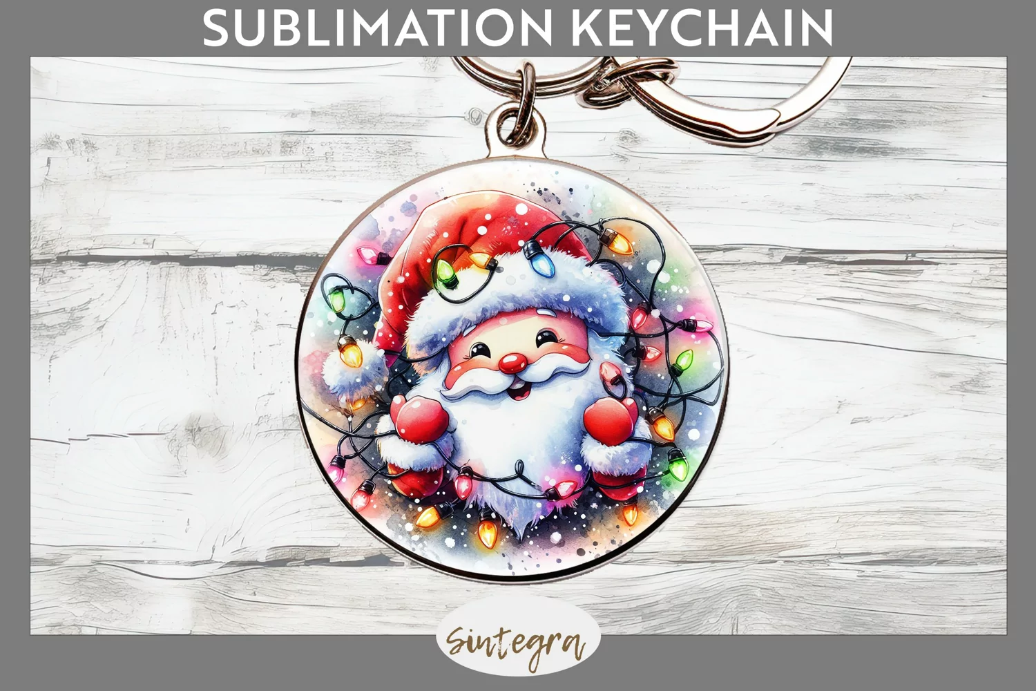 Christmas Sublimation Funny Christmas Sublimation Image Christmas Sublimation Png Sublimation Print Keychain Template Sublimation Keychain Round Keychain Png Sublimation Round Keychain Santa Claus Entangled In Lights