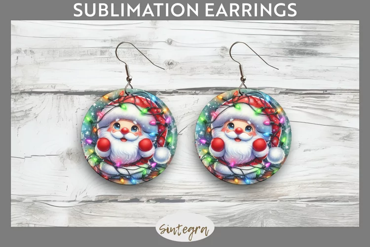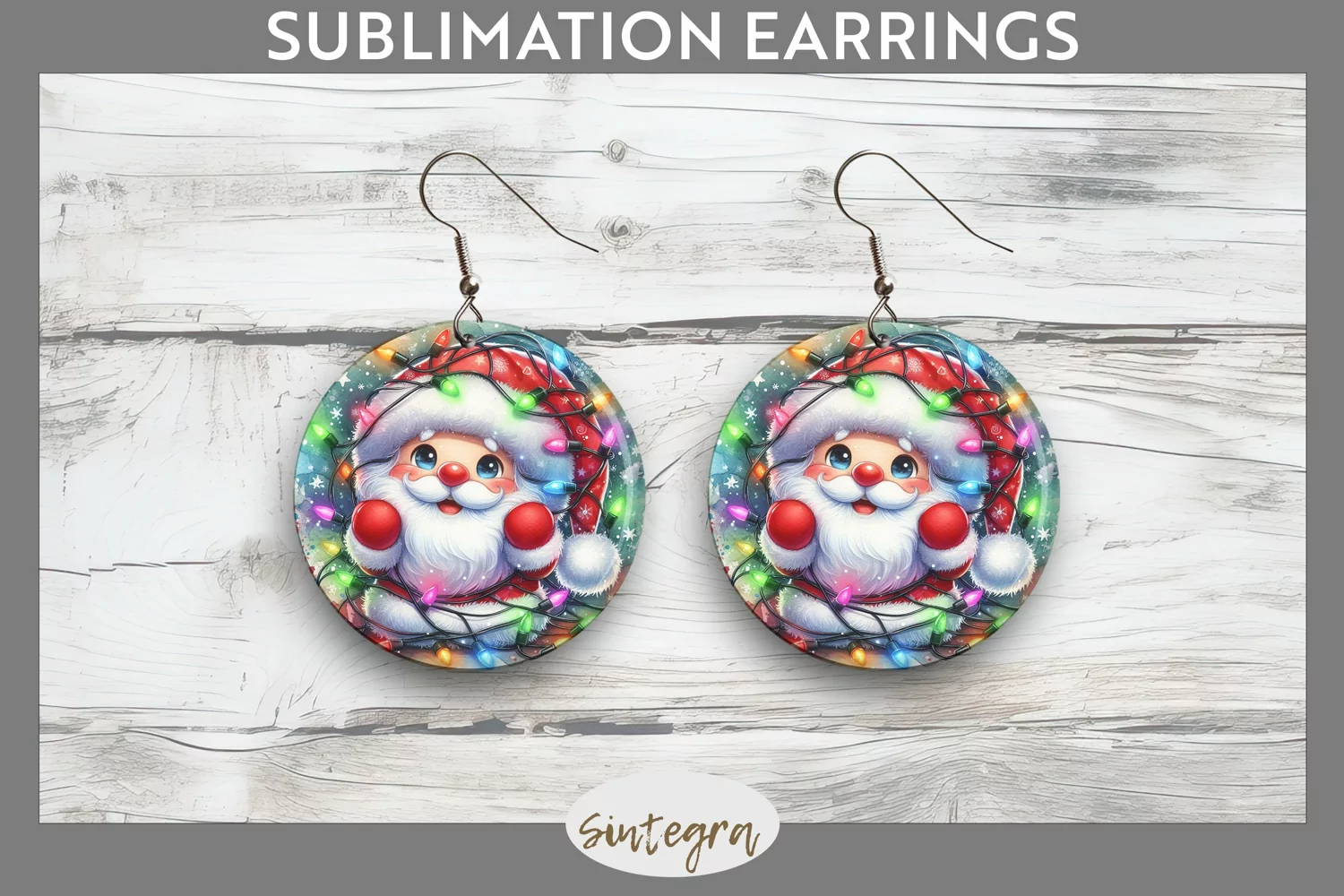 Christmas Sublimation Funny Christmas Round Earrings Sublimation Image Earrings Template Christmas Sublimation Png Sublimation Print Sublimation Earrings Sublimation Round Earrings Santa Claus Entangled In Lights