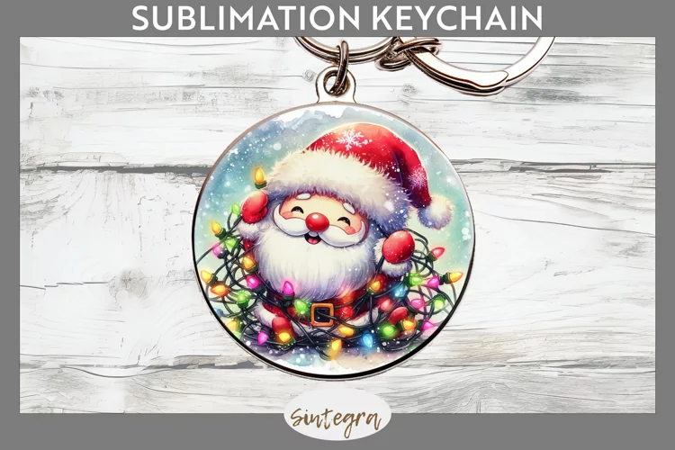 Christmas Sublimation Funny Christmas Sublimation Image Christmas Sublimation Png Sublimation Print Keychain Template Sublimation Keychain Round Keychain Png Sublimation Round Keychain Santa Claus Entangled In Lights