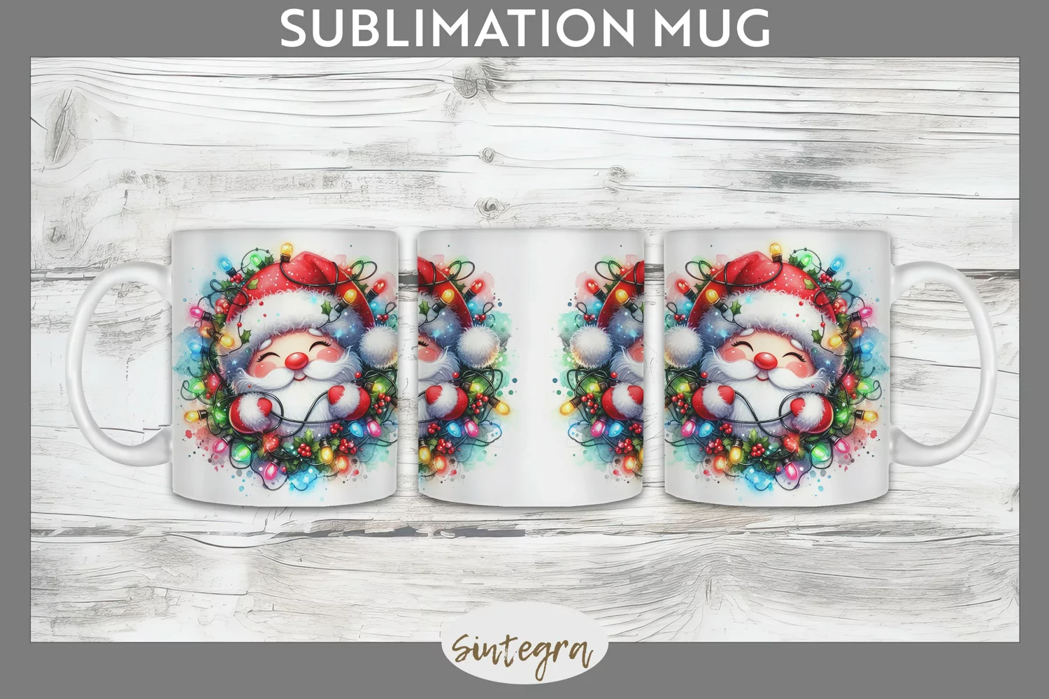 Christmas Santa Claus v6 Entangled in Lights Mug Wrap Sublim