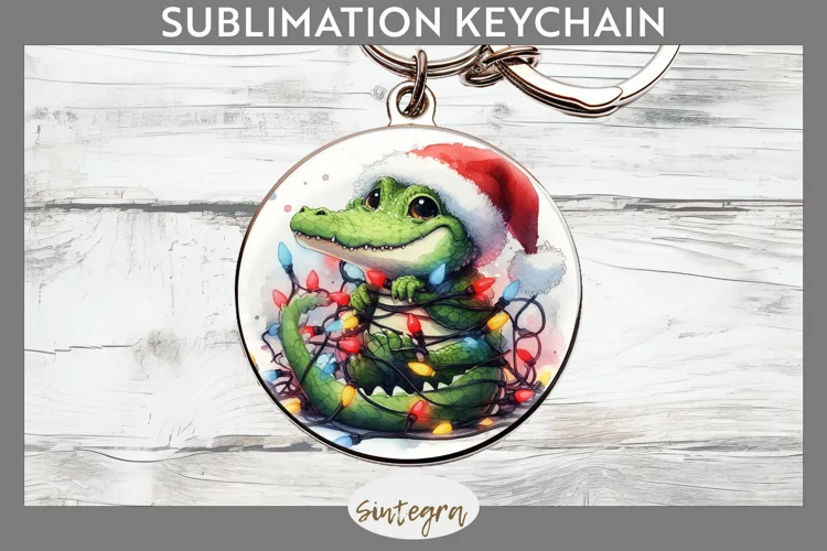 Christmas Sublimation Funny Christmas Sublimation Image Christmas Sublimation Png Sublimation Print Keychain Template Sublimation Keychain Round Keychain Png Sublimation Round Keychain Crocodile Entangled In Lights