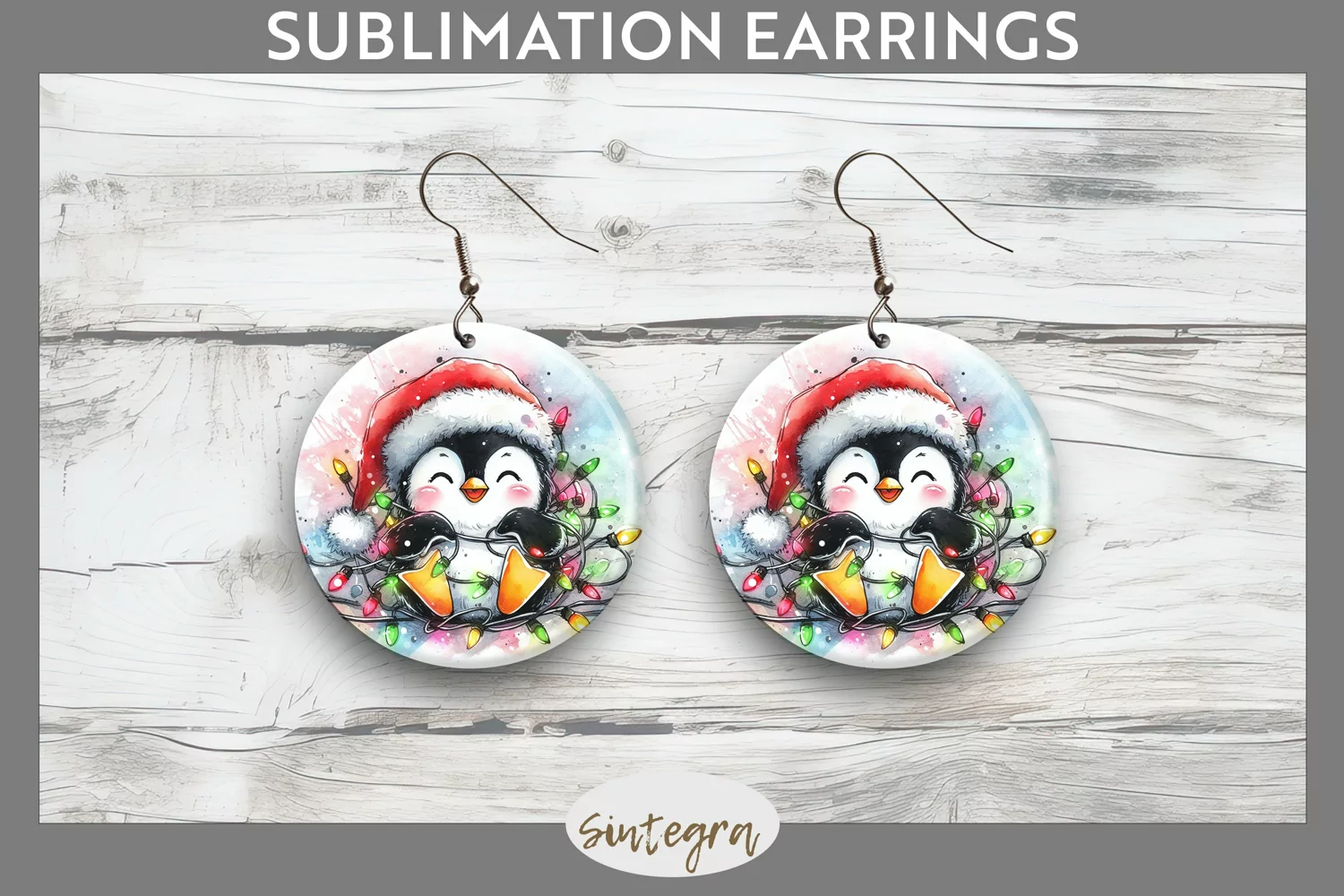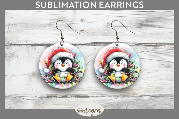 Christmas Sublimation Funny Christmas Round Earrings Sublimation Image Earrings Template Christmas Sublimation Png Sublimation Print Sublimation Earrings Sublimation Round Earrings Penguin Entangled In Lights