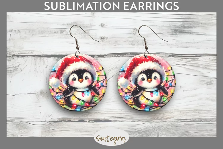 Christmas Sublimation Funny Christmas Round Earrings Sublimation Image Earrings Template Christmas Sublimation Png Sublimation Print Sublimation Earrings Sublimation Round Earrings Penguin Entangled In Lights