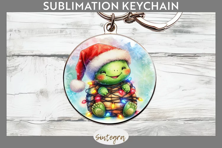 Christmas Sublimation Funny Christmas Sublimation Image Christmas Sublimation Png Sublimation Print Keychain Template Sublimation Keychain Round Keychain Png Sublimation Round Keychain Turtle Entangled In Lights