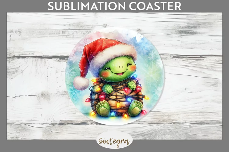 Christmas Sublimation Funny Christmas Sublimation Image Christmas Sublimation Png Sublimation Print Coaster Template Sublimation Coaster Sublimation Round Coaster Round Coaster Png Turtle Entangled In Lights