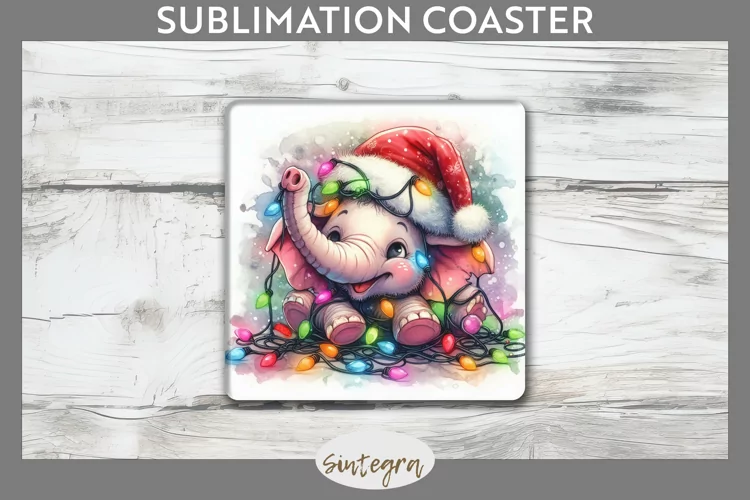 Christmas Sublimation Funny Christmas Sublimation Image Christmas Sublimation Png Sublimation Print Coaster Template Sublimation Coaster Square Coaster Png Sublimation Square Coaster Elephant Entangled In Lights