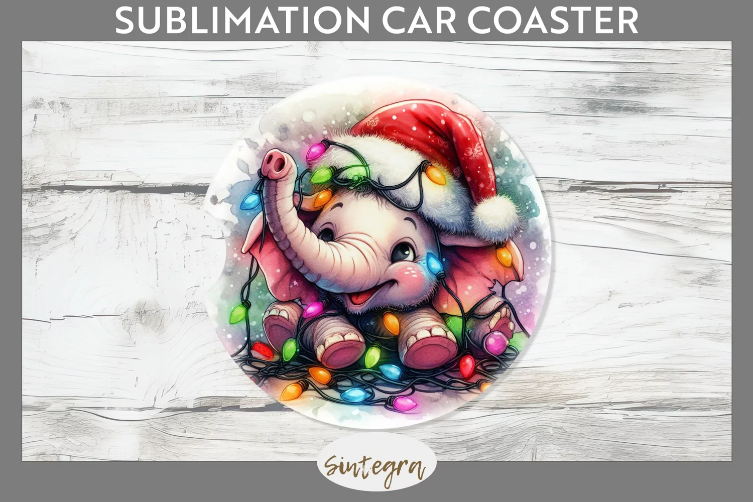 Christmas Elephant v3 Entangled in Lights Car Coaster Sublim