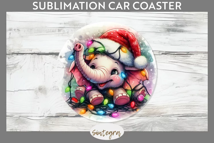 Christmas Sublimation Funny Christmas Sublimation Image Christmas Sublimation Png Sublimation Print Car Coaster Png Coaster Template Sublimation Coaster Sublimation Car Coaster Elephant Entangled In Lights