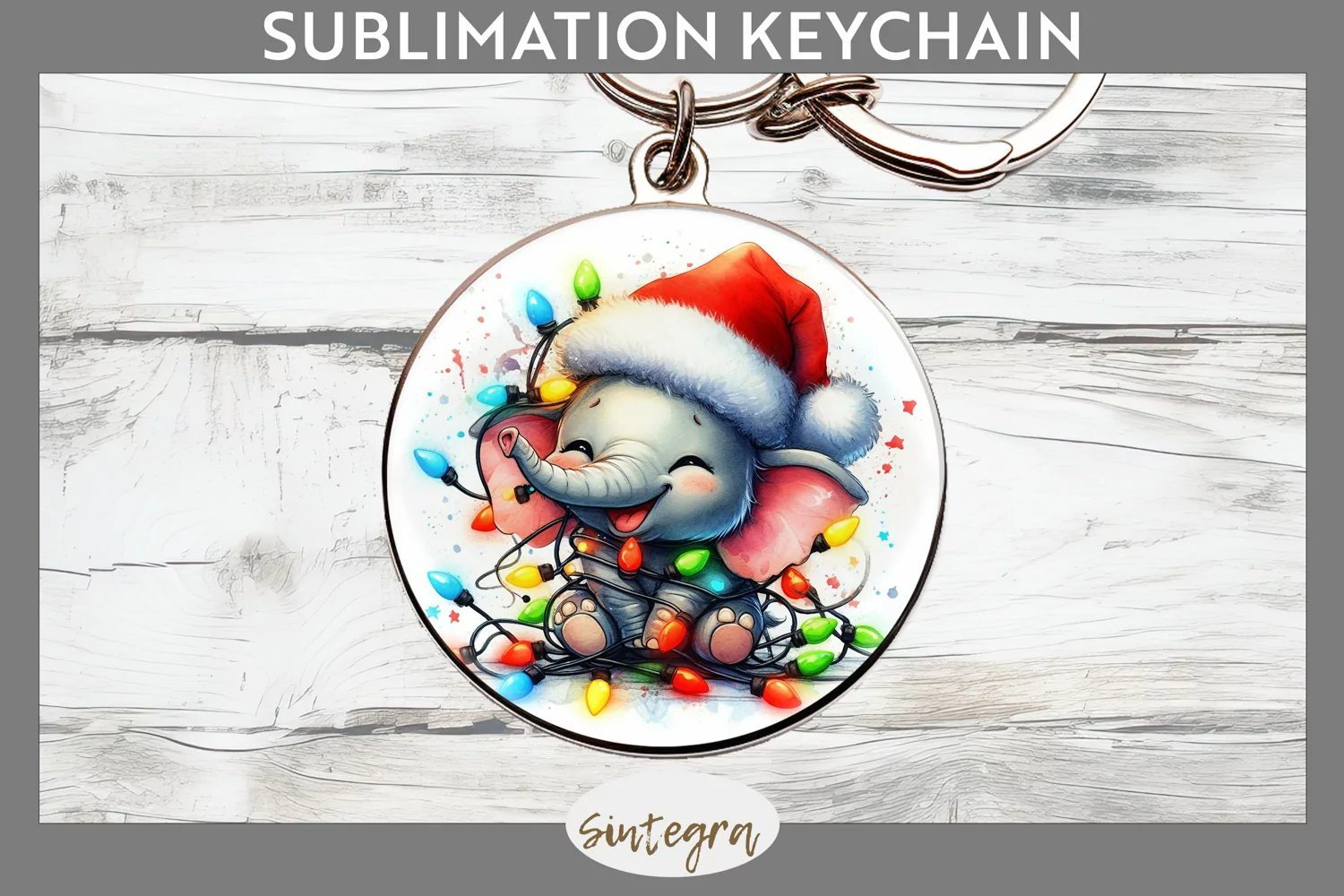 Christmas Elephant v4 Entangled in Lights Round Keychain Sub example image 1