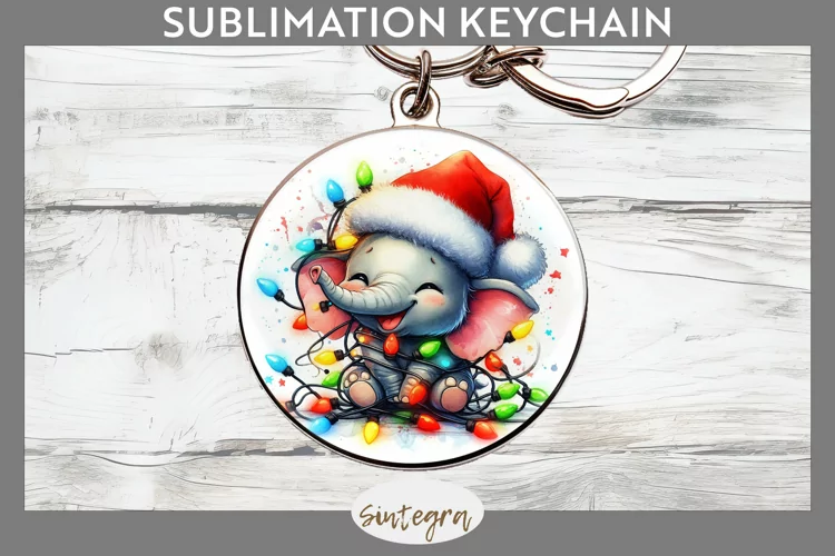 Christmas Sublimation Funny Christmas Sublimation Image Christmas Sublimation Png Sublimation Print Keychain Template Sublimation Keychain Round Keychain Png Sublimation Round Keychain Elephant Entangled In Lights