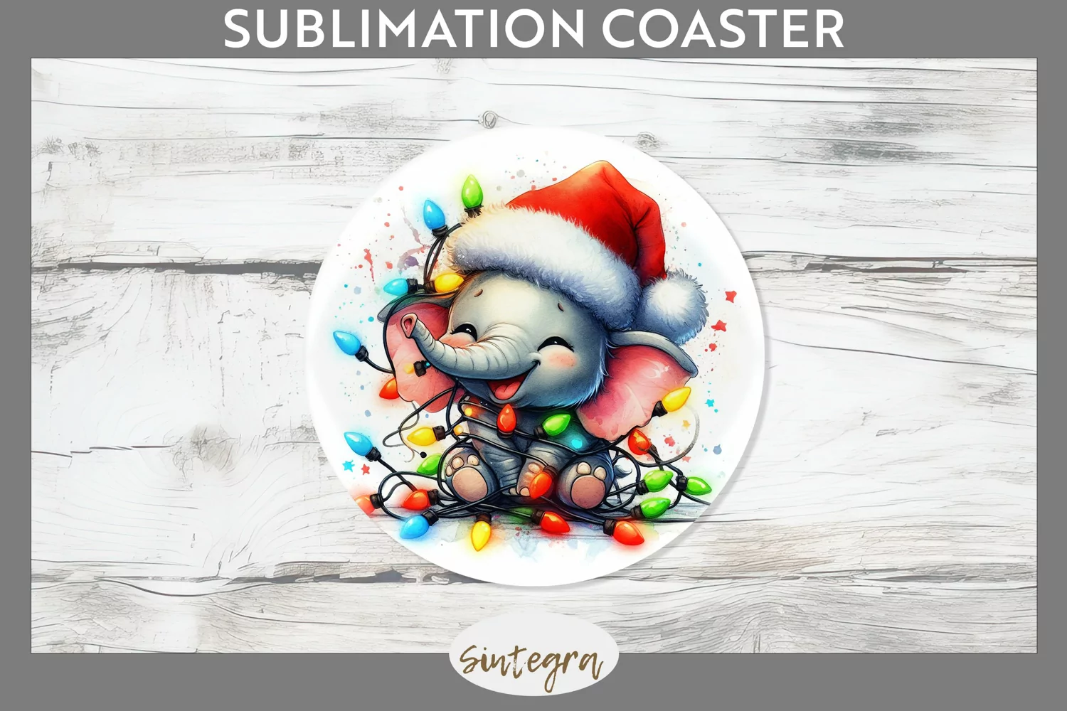 Similar Design Products to Christmas Elephant v4 Entangled in Lights Round Coaster Subl