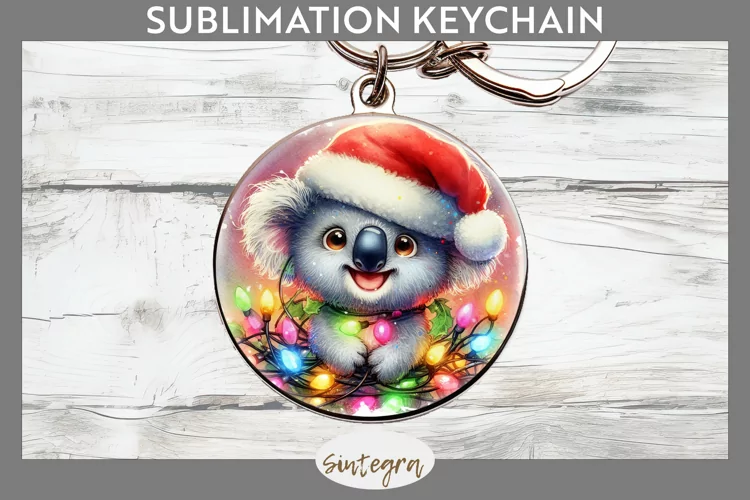 Christmas Sublimation Funny Christmas Sublimation Image Christmas Sublimation Png Sublimation Print Keychain Template Sublimation Keychain Round Keychain Png Sublimation Round Keychain Koala Entangled In Lights