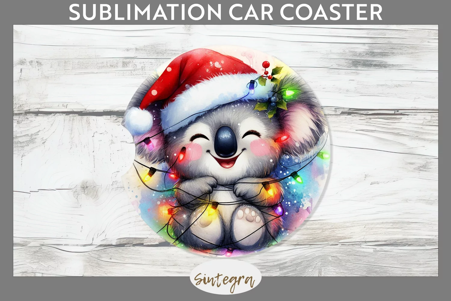 Christmas Koala v2 Entangled in Lights Car Coaster Sublimati example image 1