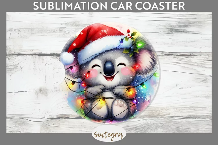 Christmas Koala v2 Entangled in Lights Car Coaster Sublimati