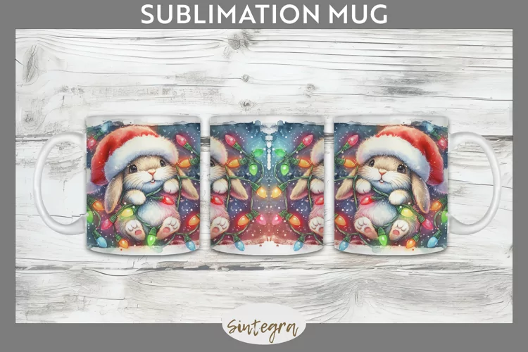 Mug Template Sublimation Mug Christmas Sublimation Funny Christmas Sublimation Image Christmas Sublimation Png Mug Wrap Coffee Cup Wrap Sublimation Mug Print Bunny Entangled In Lights