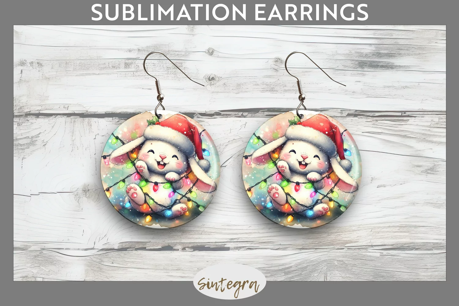 Christmas Bunny v1 Entangled in Lights Round Earrings Sublim example image 1