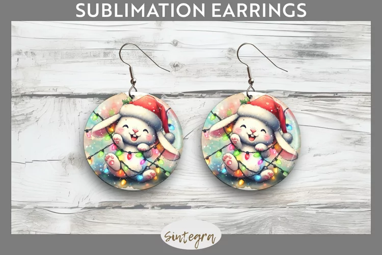 Christmas Sublimation Funny Christmas Round Earrings Sublimation Image Earrings Template Christmas Sublimation Png Sublimation Print Sublimation Earrings Sublimation Round Earrings Bunny Entangled In Lights