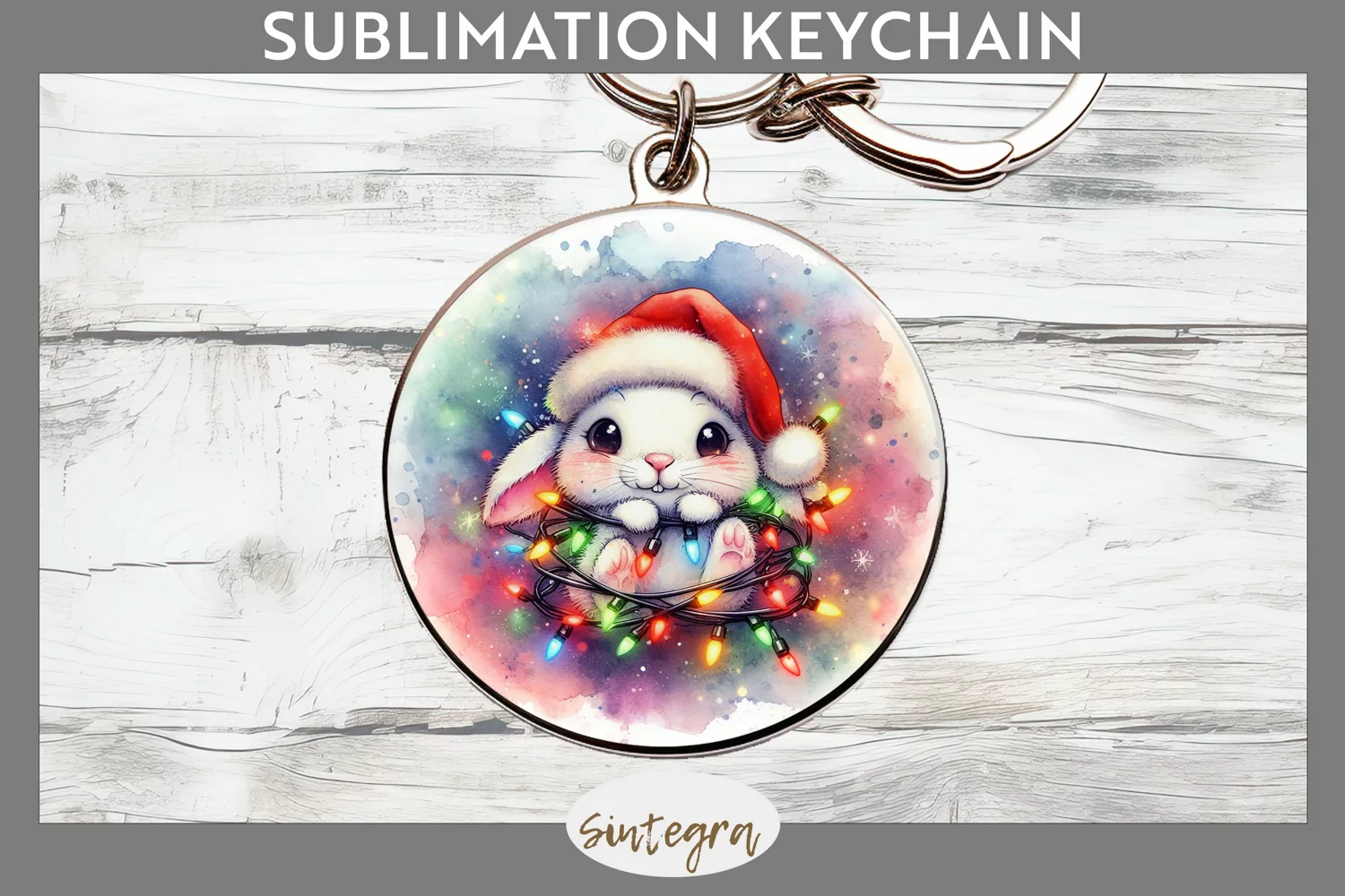 Christmas Bunny v4 Entangled in Lights Round Keychain Sublim example image 1