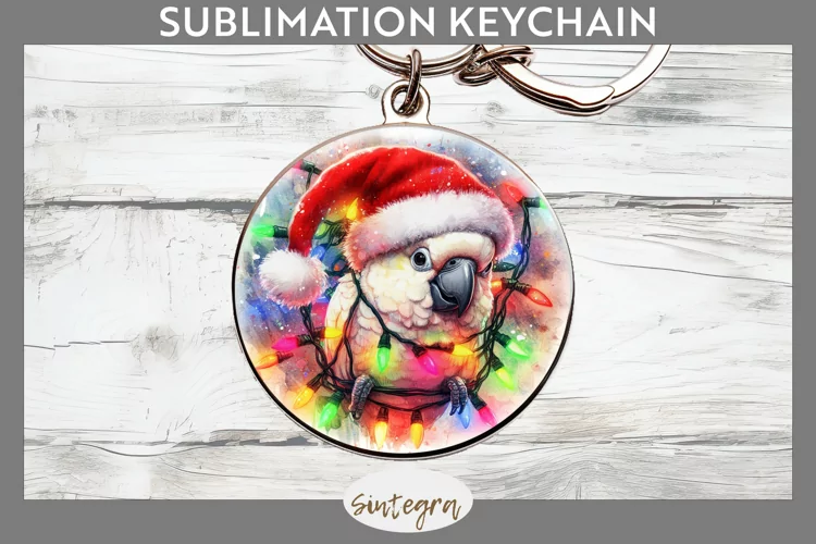 Christmas Sublimation Funny Christmas Sublimation Image Christmas Sublimation Png Sublimation Print Keychain Template Sublimation Keychain Round Keychain Png Sublimation Round Keychain Cockatoo Entangled In Lights