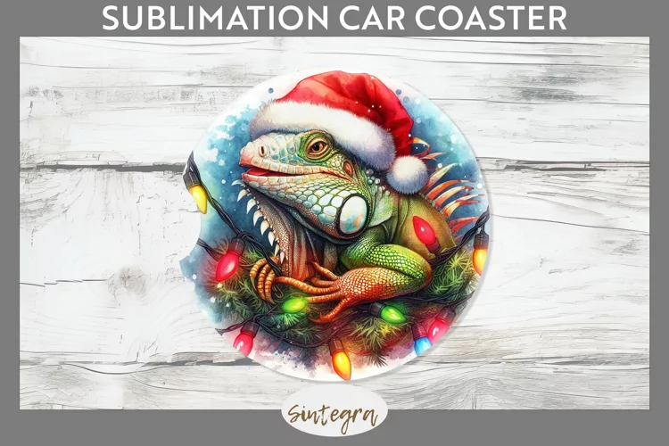 Christmas Sublimation Funny Christmas Sublimation Image Christmas Sublimation Png Sublimation Print Car Coaster Png Coaster Template Sublimation Coaster Sublimation Car Coaster Iguana Entangled In Lights