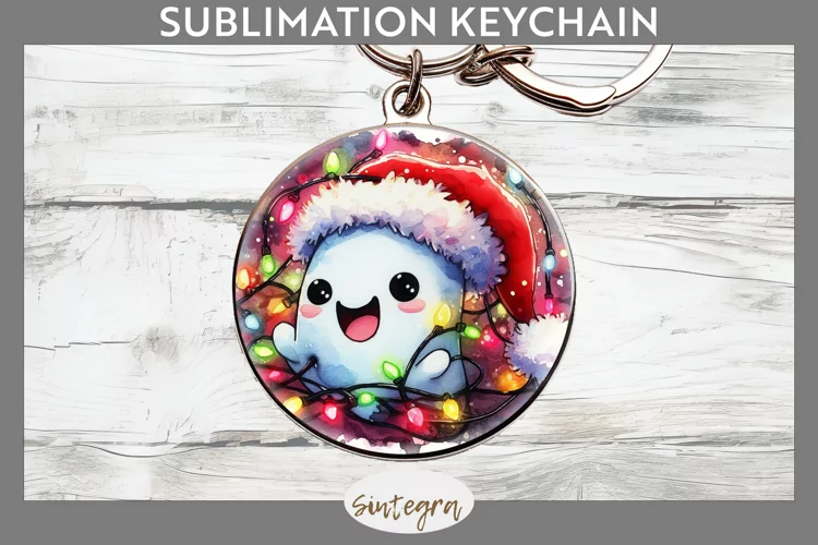 Christmas Sublimation Funny Christmas Sublimation Image Christmas Sublimation Png Sublimation Print Keychain Template Sublimation Keychain Round Keychain Png Sublimation Round Keychain Ghost Entangled In Lights