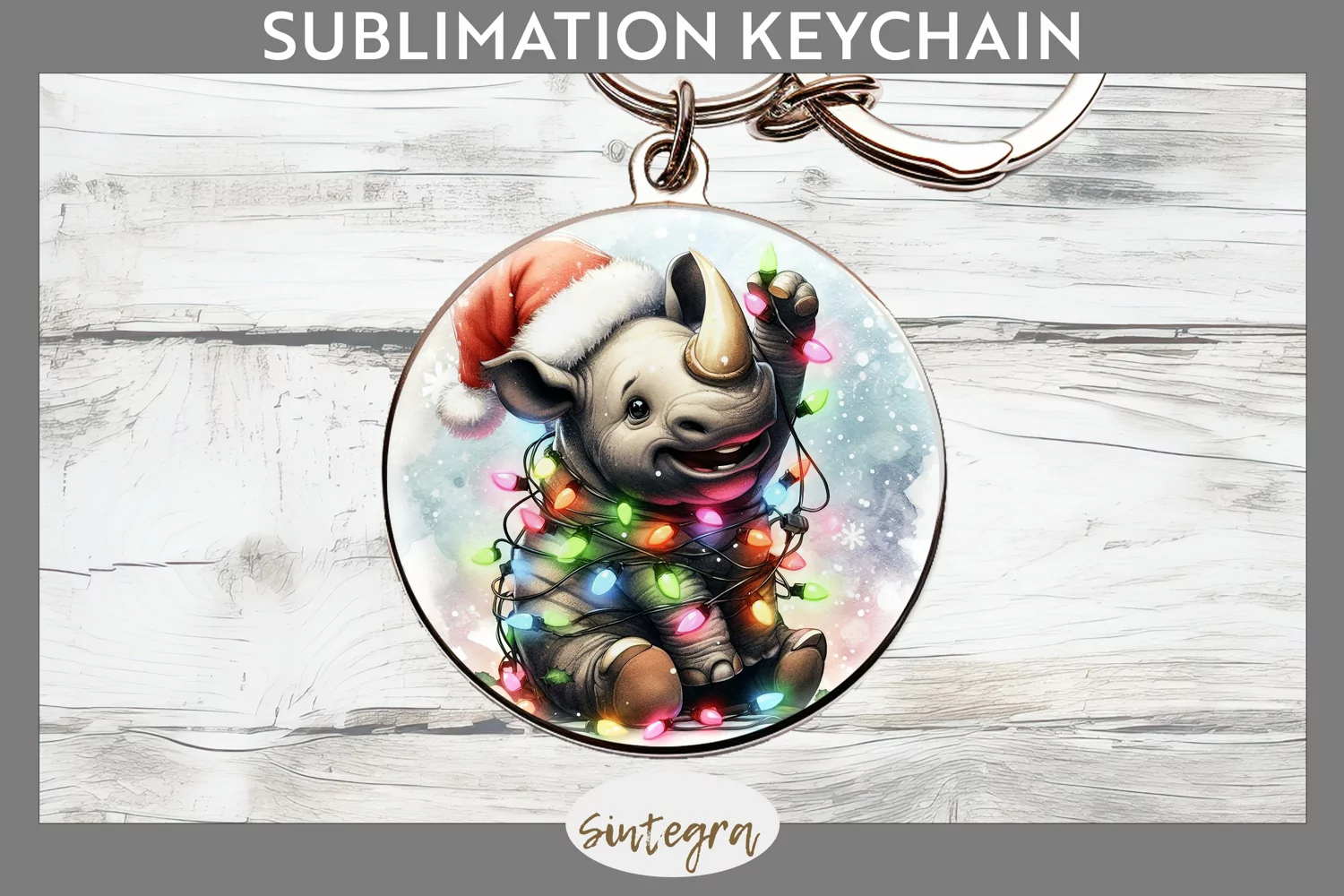 Christmas Sublimation Funny Christmas Sublimation Image Christmas Sublimation Png Sublimation Print Keychain Template Sublimation Keychain Round Keychain Png Sublimation Round Keychain Rhino Entangled In Lights