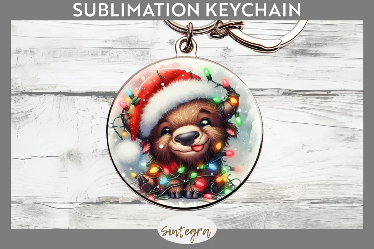 Christmas Sublimation Funny Christmas Sublimation Image Christmas Sublimation Png Sublimation Print Keychain Template Sublimation Keychain Round Keychain Png Sublimation Round Keychain Bison Entangled In Lights