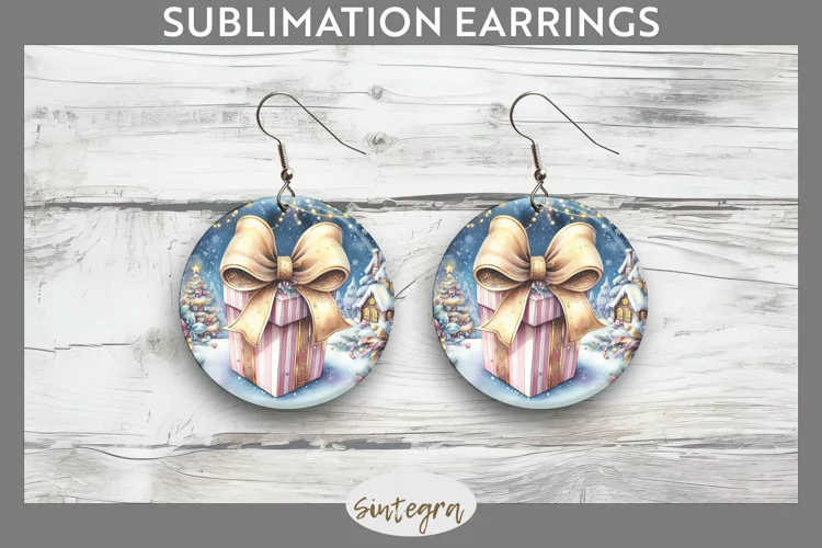 Christmas Gift v2 Round Earrings Sublimation example image 1