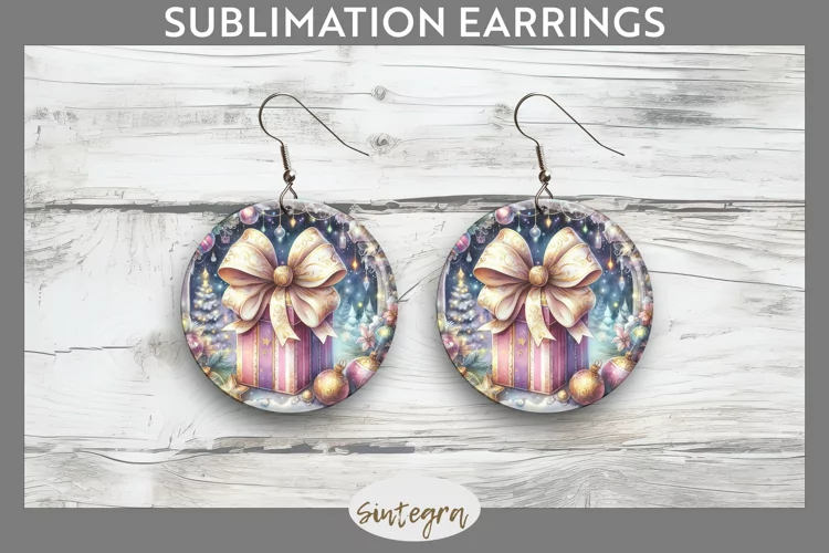 Christmas Gift v3 Round Earrings Sublimation example image 1