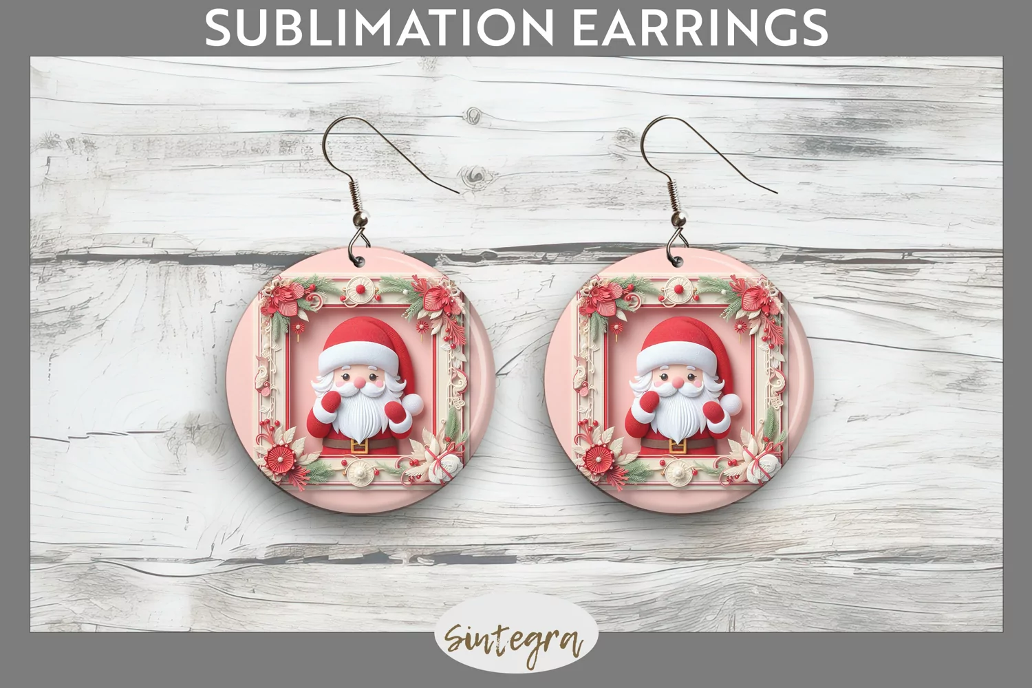 3D Christmas Santa v9 Round Earrings Sublimation example image 1