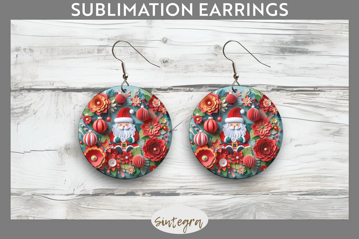 3D Christmas Santa v14 Round Earrings Sublimation example image 1