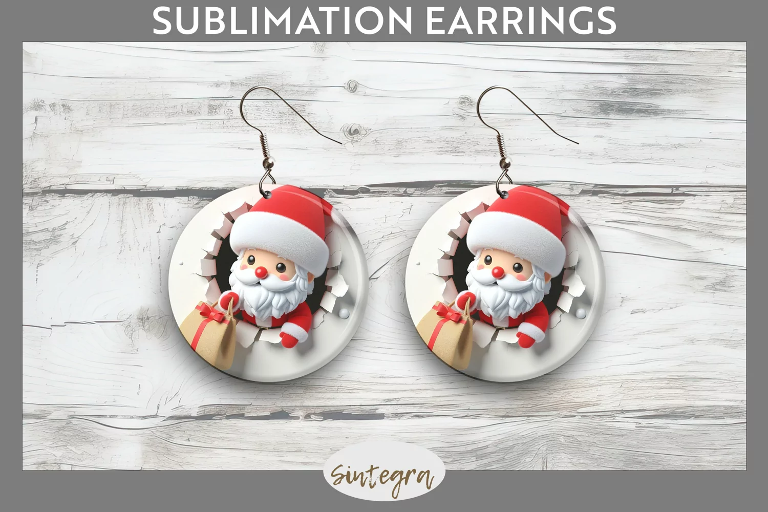 3D Christmas Santa v32 Round Earrings Sublimation example image 1