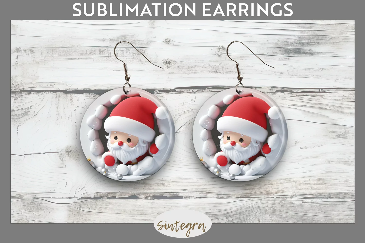 3D Christmas Santa v35 Round Earrings Sublimation example image 1