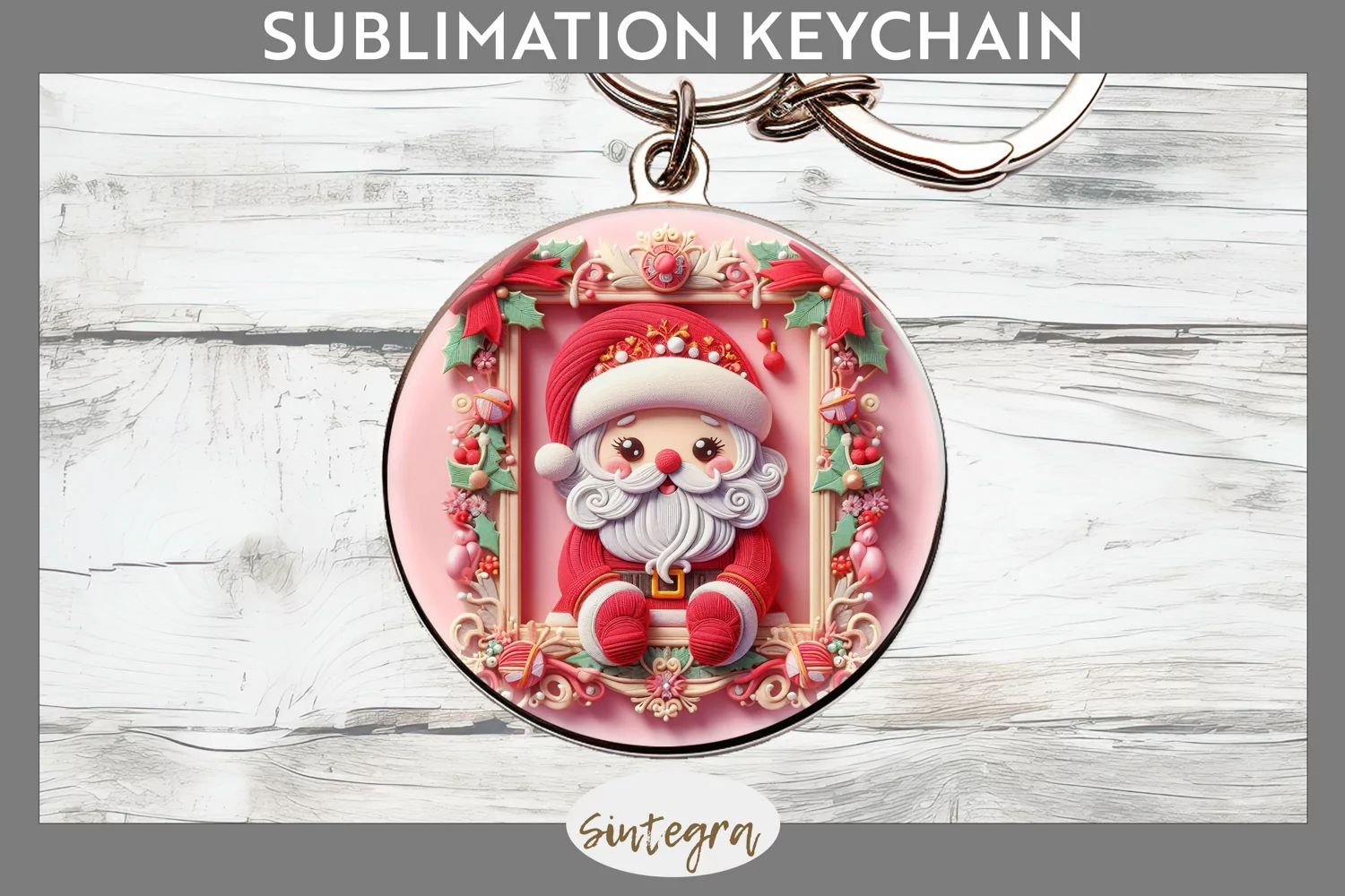 3D Christmas Santa v10 Round Keychain Sublimation example image 1