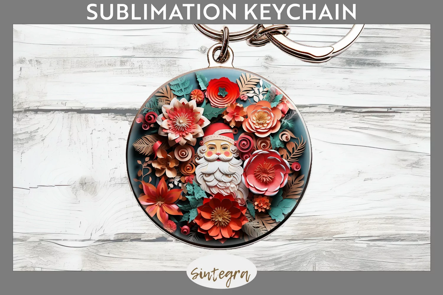3D Christmas Santa v16 Round Keychain Sublimation