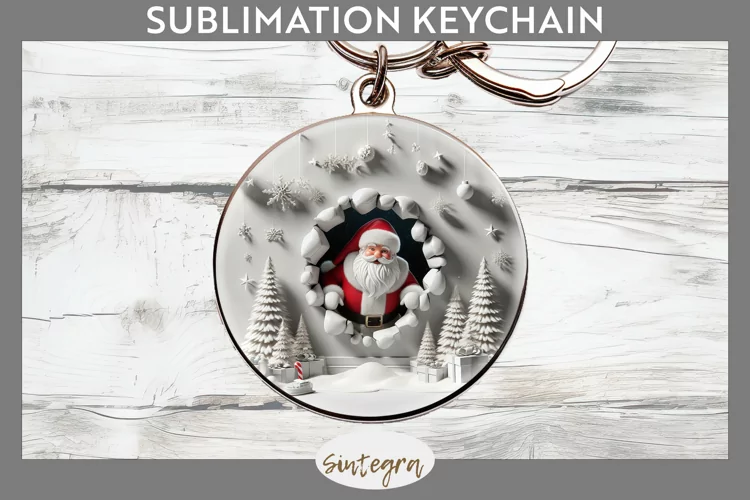 Christmas Sublimation Funny Christmas Sublimation Image Christmas Sublimation Png Sublimation Print Keychain Template 3d Santa Claus Sublimation Keychain Round Keychain Png Sublimation Round Keychain