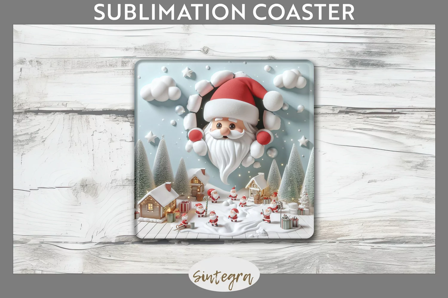 3D Christmas Santa v25 Square Coaster Sublimation example image 1
