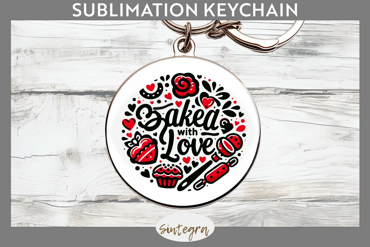 Baked With Love v2 Round Keychain Sublimation example image 1