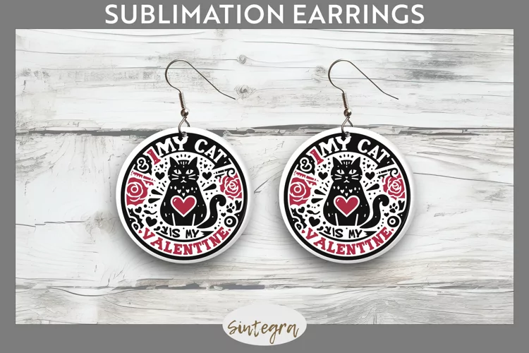 Funny Valentine Round Earrings Sublimation Image Earrings Template Sublimation Print Valentine Sublimation My Cat Is My Valentine Sublimation Earrings Valentine Sublimation Png Sublimation Round Earrings