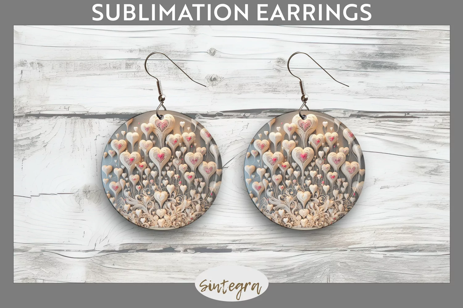 3D Love Hearts v1 Round Earrings Sublimation example image 1