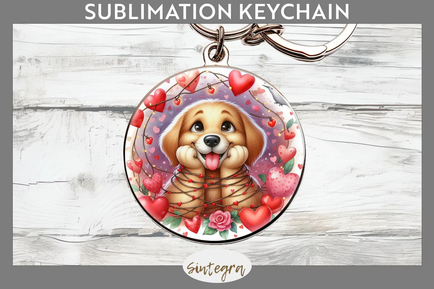 Love Dog v2 Round Keychain Sublimation example image 1