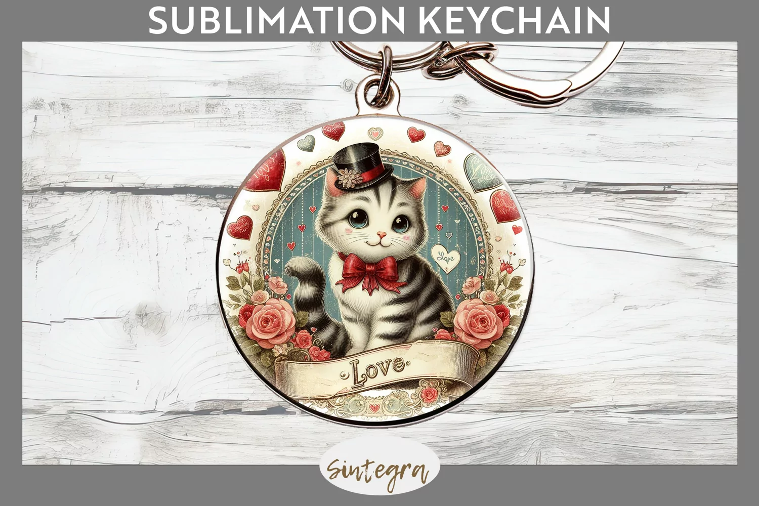 Love Cat v3 Round Keychain Sublimation
