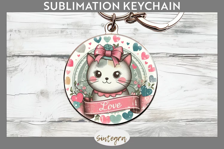 Love Cat v10 Round Keychain Sublimation example image 1